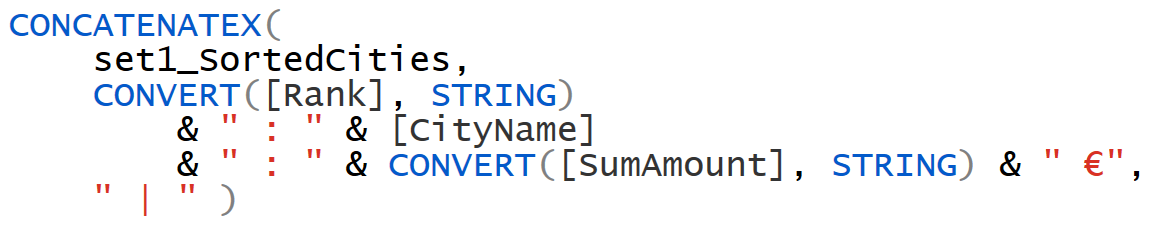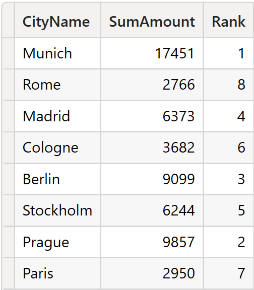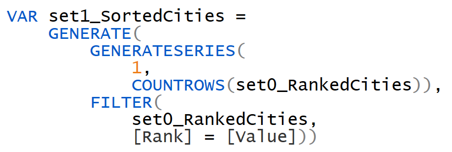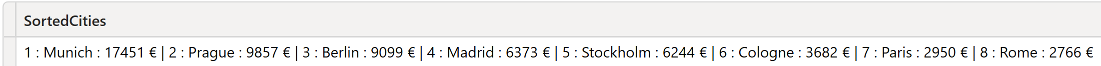 - - Schritt 1: Eine Variable "set0_RankedCities" wird mit einer Liste von Städte-Namen, deren Umsatz und einer entsprechenden Rank-Information gefüllt.