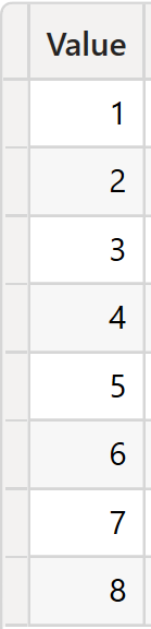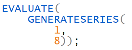 Beachten Sie, dass das Ergebnis von GENERATESERIES eine Spalte namens [Value] enthält. Auf diese Spalte wird in späteren Code-Zeilen verwiesen.