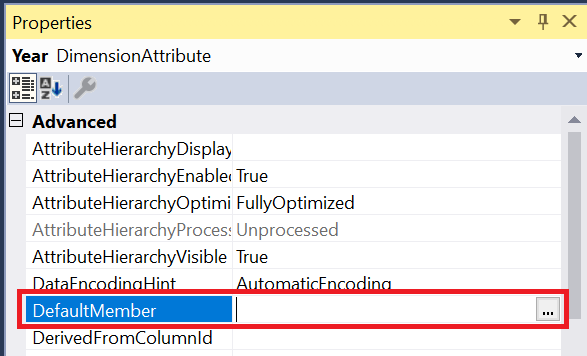 By default, the DefaultMeasure-property is not set. In this case, the cube takes the first member of the [Measures]-dimension – in the example it´s the [Amount]-member – and sets it as default. The default behavior can be changed as follows: